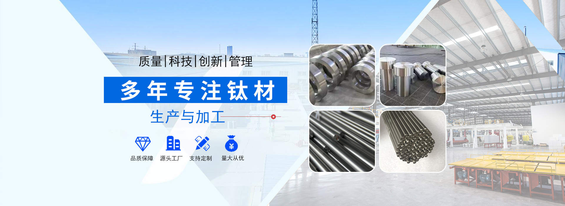 陜西辰軒鑫達金屬材料有限公司位于具有“中國鈦城”之稱的陜西寶雞高新技術開發區,公司依托“中國鈦城”的雄厚的行業資源,強大的有色金屬科研及制造實力,完整的有色金屬工業制造產業鏈,形成了一套完整的生產流程,公司主要從事有色金屬的加工,生產及銷售及工業及民用鈦、鎳、鉬及其他稀貴金屬材料的深加工研究生產及國際、國內貿易,集有色金屬材料銷售、產品設備制造及新產品開發為一體。主要以生產鈦材及其他金屬材料為主,主導產品有:鈦錠、鈦棒、鈦絲、鈦板、鈦法蘭等以及其他有色金屬材料:鋯板、鋯管、鋯棒、鋯鈀、鋯餅、鈮管、鈮棒、鉭板、鉭棒、鉭管等有色金屬。產品廣泛應用于化工、冶金、石油、紡織、醫藥、輕工、環保···